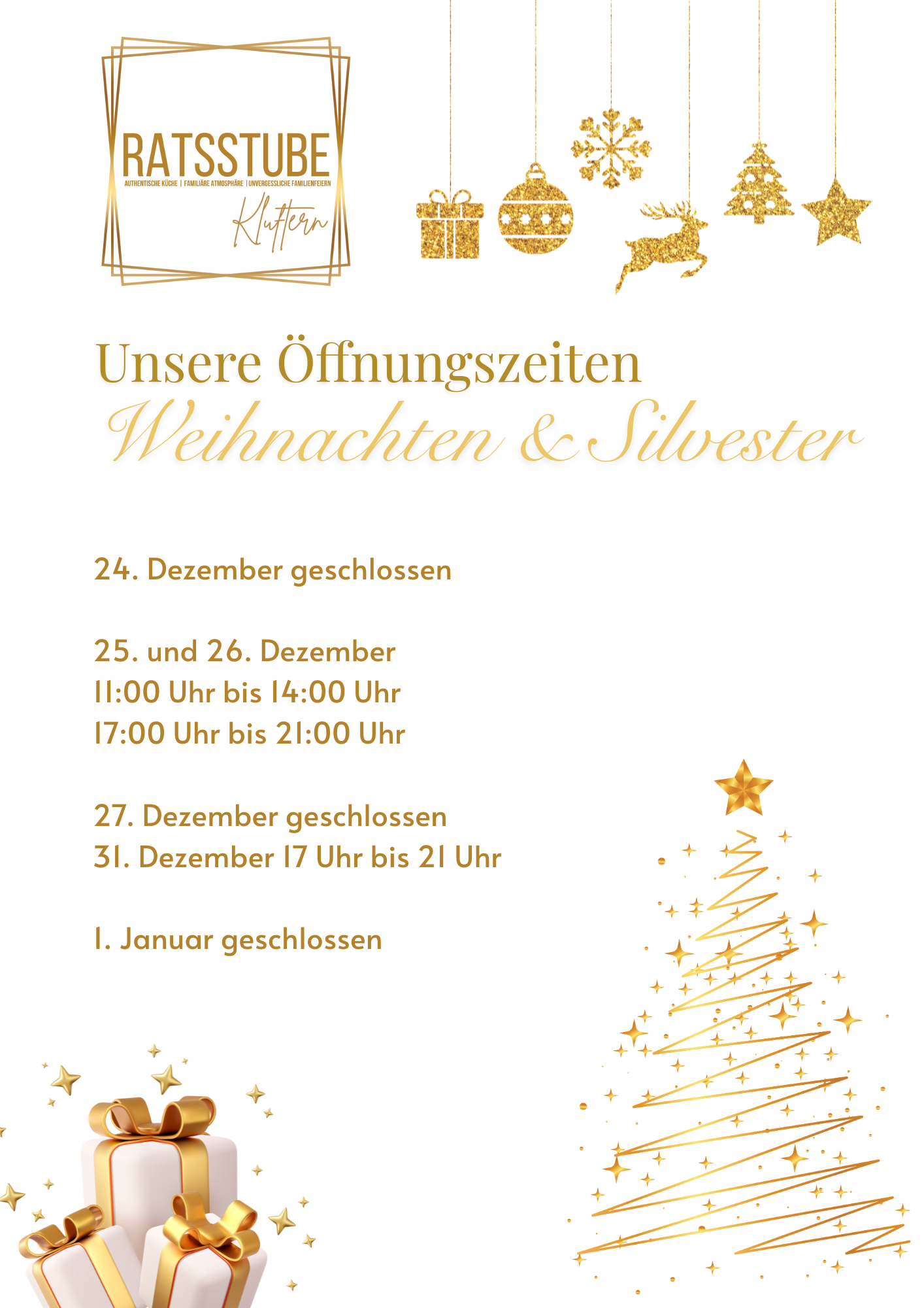 Öffnungszeiten Weihnachten und Silvester